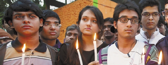 在印度加尔各答,人们参加烛光悼念活动,纪念去世的轮奸案受害女孩。 新华社发