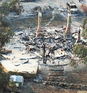 1月5日,在澳大利亚南部塔斯马尼亚岛达纳利镇,森林大火造成建筑损毁。澳大利亚警察表示,南部塔斯马尼亚岛山林火灾致使数以千计居民逃散,一人丧生。 新华社发
