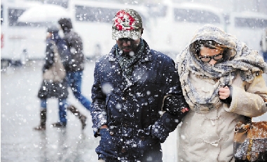 1月7日,在土耳其最大城市伊斯坦布尔,人们在雪中路过苏丹艾哈迈德广场。当日,包括伊斯坦布尔在内的土耳其多个地区迎来较大规模降雪,造成多处路段被封,百余所学校停课。 新华社记者 马研 摄