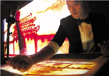 1月8日,中国著名沙画大师张明聪来到衢州,为观众表演了一场创意神奇的沙画表演。张明聪是浙江沙画第一人,在全国各地沙画表演有4年。