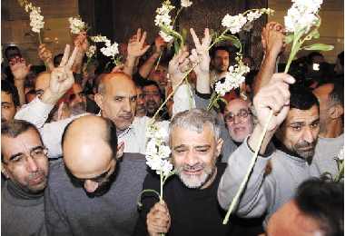 1月9日,在叙利亚首都大马士革,遭叙反对派武装绑架的伊朗人被释放后抵达当地一家酒店。据伊朗新闻电视台9日报道,去年8月在叙利亚境内遭叙反对派武装绑架的48名伊朗人已经获释。 新华社发
