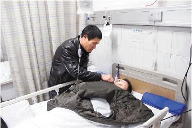 手术后,父亲汪先明守在汪南南的床边。 杨振华 摄