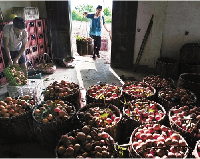 千峡湖库区生态条件好,村民们积极发展生态农业,种植桃子,远销温州、台州等地。 吴焕章 摄