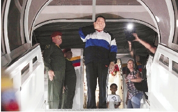 去年12月10日,查韦斯再次前往古巴进行癌症治疗。图为查韦斯出发前在机场向支持者致意。 新华社发