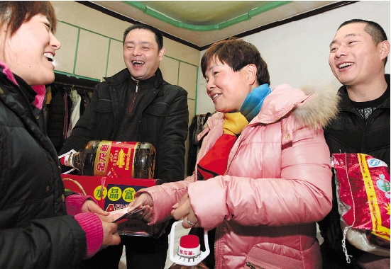 1月13日,宁波出租车夏慧星文明车队员工来到困难家庭卢明花家,送上年货和助学款。 胡建华 陈结生 刘小哲 摄