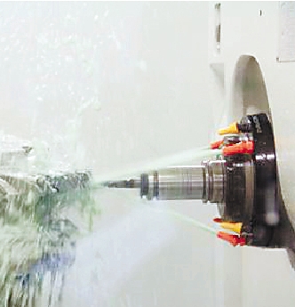 机床上的刀具正在加工发动机零部件。