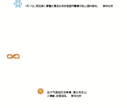1月15日,两名游人冒着大雪在比利时首都布鲁塞尔的公园内游玩。 新华社发