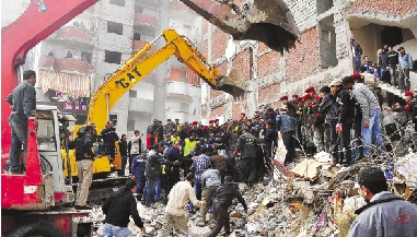 1月16日,埃及第二大城市亚历山大发生楼房倒塌事故,目前该事故已造成至少24人死亡、20人受伤。救援工作仍在继续,伤亡数字有可能上升。图为救援人员在楼房倒塌现场施救。 新华社发