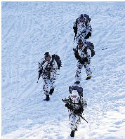 1月17日至19日,国际特种兵“乌特里亚登陆挑战赛”在爱沙尼亚纳尔瓦举行。来自爱沙尼亚、奥地利、荷兰和芬兰等国的18个四人组特种兵参加了越野、攀援等综合项目的比赛。图为特种兵在零下31度的严寒天气下进行比赛。 新华社发