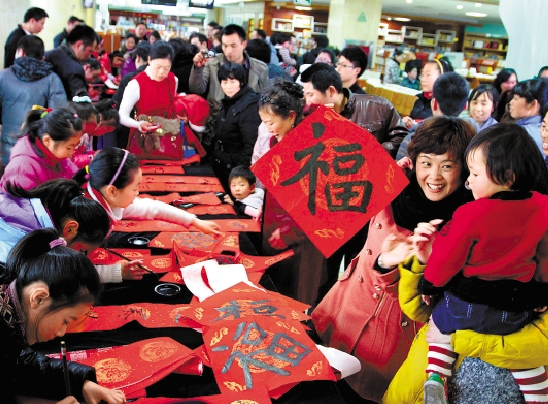 1月20日,宁波市江东区荷花庄小学20多名“小书法家”把一份份美好的祝福送到市民手中。