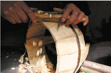通讯员 倪立芳 凌翔 本报讯 德清县乾元镇丁山路5号,49岁的孙根华和47岁的妻子张连琴在忙着箍桶。 箍桶匠又称圆木匠,是专门从事圆形木制容器制作的一种古老手工艺人。以前,生活中使用的脸盆、澡盆、蒸饭用的饭樽、担水用的水桶以及姑娘出嫁的嫁妆马桶、提儿、茶盘、条箱等,都出自箍桶匠之手。 这些盆桶是杉木制作的,具有体积轻、不变形的优点,可使用几十年。孙根华从16岁开始拜师学习箍桶,之后挑着担子,走街串巷,喊着“箍桶呀”,招揽生意。随着社会进步,日常生活器具被塑料、铁、不锈钢等制具替代,箍桶这个老行当渐渐淡出了人们的视线。孙根华便在乾元镇不是很闹猛的街上租了间房从事箍桶,他的妻子是他的助手。 孙根华说,他们通常使用斧锯刨凿等一些特殊工具,通过劈、削、锯、刨、凿等20多道工序,把一块块零散的木板,拼接制作成各种大小不一的圆形器具。由于箍桶工序复杂,加上市场萎缩,很少有人愿意接班这操作很苦、收入不高的手艺。眼看有着悠久历史的箍桶手艺面临失传,他期盼接班人能出现…… |