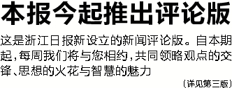 这是浙江日报新设立的新闻评论版。自本期起,每周我们将与您相约,共同领略观点的交锋、思想的火花与智慧的魅力