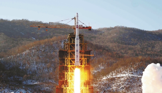2012年12月12日,朝鲜“银河3号”运载火箭点火升空,发射第二颗“光明星3号”卫星。 新华社发