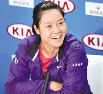 1月25日,李娜出席决赛前新闻发布会表情轻松。 新华社发