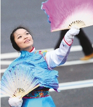 1月21日,一名参加美国总统就职游行的演员在表演中国民间舞蹈。 新华社发