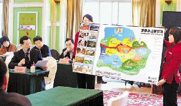 省政协委员徐剑光向大家展示他设计的理想小镇。