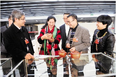 1月23日,省政协委员雷祥雄(右二)等来到西湖文化广场的浙江文化艺术品交易所调研。 本报记者 胡元勇 吴元峰 吴煌 摄