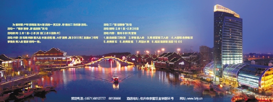 预定电话:(0571)88127777 88126666 酒店地址:杭州市拱墅区金华路58号 网址:www.brly.cn