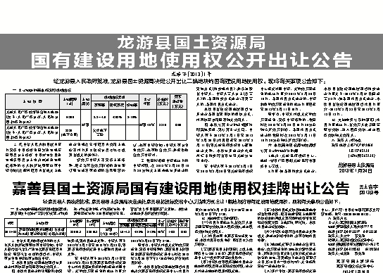 经龙游县人民政府批准,龙游县国土资源局决定公开出让二幅地块的国有建设用地使用权。现将有关事项公告如下: