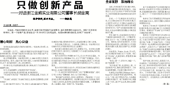 ——对话浙江金威实业有限公司董事长胡金高