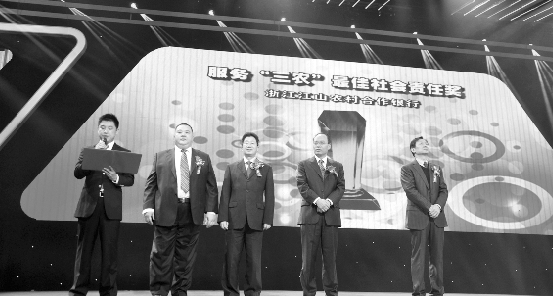 江山合行荣获“2012年度全国金融机构服务‘三农’最佳社会责任奖”