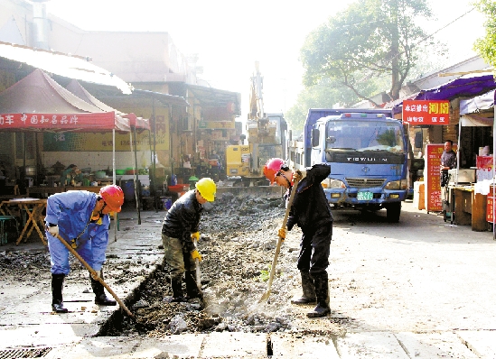 西排渠东侧(花鸟市场段)污水管网改造工程。 (图片由衢州市委办提供)