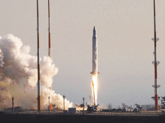 1月30日,韩国与俄罗斯合作研制的“罗老”号运载火箭从位于韩国西南部的航天中心点火升空。 新华社发