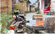 江山市委报道组余静轲:古色古香的浔里街边,是一道清澈见底的水渠,蜿蜒曲折穿镇而过。“以前大家不注意,垃圾都往里面倒,排污也往水渠走。”江山市廿八都古镇,44岁的金兆阳正在水渠边清洗准备做铜锣糕用的粽叶。古镇开发旅游后,沿街的村民都自觉地清理、保护水渠,为家乡旅游出一份力。
