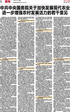 中共中央国务院关于加快发展现代农业