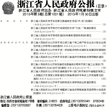 编辑部:(0571)87053687 传真:(0571)87054639 公报电子版网址:zfgb.zj.gov.cn