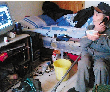 老周在接听爱心人士打来的电话。 包敦远 摄