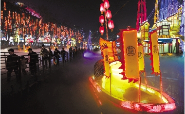 2月3日,在四川省自贡市彩灯公园里,游客在《盐场印象》灯组里赏灯。当日,第十九届自贡国际恐龙灯会在四川省自贡市彩灯公园正式亮灯开园。此次灯会有“吉祥中国年”、“梦幻天穹”、“侏罗纪探秘”、“盐都印象”、“中华彩灯”和“开心城堡”六大主景区。作为自贡“三绝”之一的自贡灯会久负盛名,拥有“天下第一灯”的美誉。 新华社记者 江宏景 摄 |