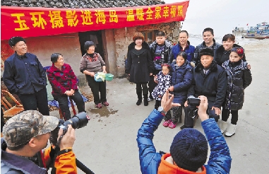 玉环县人口和计划生育局近日组织当地摄影家协会会员,来到偏僻的海山乡茅坦岛,开展摄影进海岛、免费拍摄全家福活动。图为渔民杨希云一家留下幸福瞬间。 林楚炳 黄翔 摄