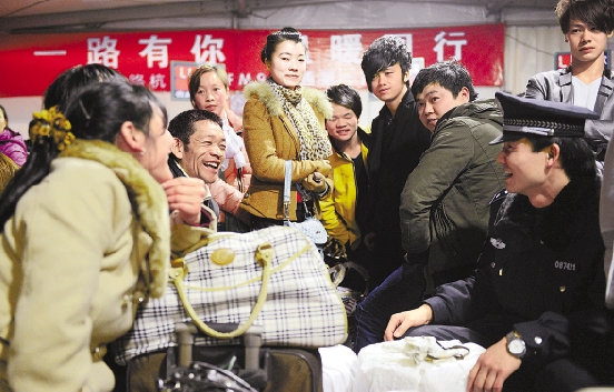 春运高峰期间,公安人员不停穿梭在各车厢和人流密集的地方,确保春运安全。 本报记者 潘良干 储永志 摄