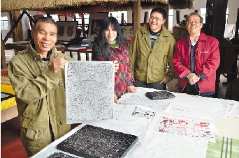 在基地参观的游客尝试手工制作年画。 张丹丹 邵勤旦 摄