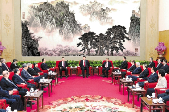2月6日,习近平、李克强、俞正声等在中南海同党外人士欢聚一堂,共迎新春。 新华社记者 刘建生 摄