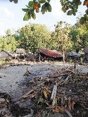 这是在所罗门群岛拉塔拍摄的因地震海啸损毁的房屋(2月6日摄)。所罗门群岛总理发言人乔治·赫明7日说,6日强震引发的海啸已导致该国6人死亡、10人失踪。 新华社发