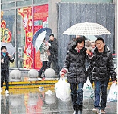 通讯员 吴拯 丁珊 见习记者 沈吟:2月7日,寒冷来袭,浙北飘起雪花,长兴县城街头雪花飞舞。但是大雪挡不住浓浓的年味,不少人拎着大包小包,从超市采购归来。他们的购物袋里年货装得满满的,脸上露出喜悦。