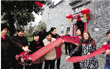 | 上联:干部村民一碗水平 家家富裕喜盈盈 下联:党心民心心心相印 人人幸福乐滔滔 横批:和谐滕头 赠送对象:奉化市滕头村村民 奉化滕头村村民收到记者吴晓鹏赠送的春联后,开心地展示起来。 吴晓鹏 摄 |