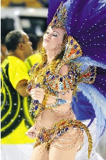2月11日,桑巴学校的学员在巴西里约热内卢参加狂欢节巡游。10日起,巴西里约热内卢连续两天进行特级组桑巴舞学校的花车巡游表演,把里约狂欢节引入高潮。 新华社发
