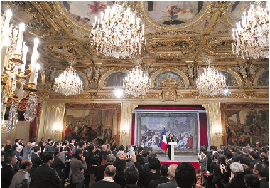 2月18日,法国总统奥朗德在爱丽舍宫举行庆祝中国等亚洲国家传统农历新年招待会,向包括法国华人和旅法华侨在内的亚裔人士致以新年祝福。他表示,法中两国合作新周期即将到来,两国将在延续历史性关系的基础上展开新的交流与合作,并表示将于今年对中国进行重要访问。以华侨华人为主的约300名亚裔人士出席了招待会。 新华社记者 高静 摄 |