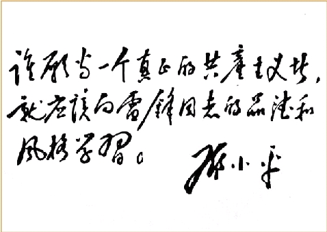 “谁愿当一个真正的共产主义者,就应该向雷锋同志的品德和风格学习。”