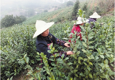 在瑞安市高楼镇茶山上,采茶工陆续开采清明早茶。瑞安清明早茶是我省成熟最早的茶叶之一。 见习记者 冯巧婕 市委报道组 张闯 摄