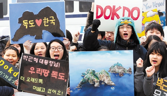 2月22日,韩国民众示威抗议日本举行“竹岛日” 活动。 视野网供图