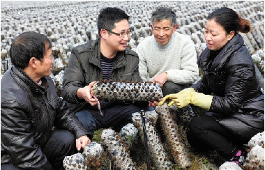 近日,桐庐农业技术推广中心技术人员在食用菌基地对农户进行现场技术辅导。 何小华 黄强 摄