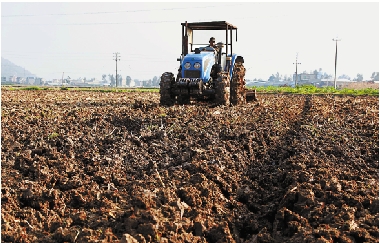 2月25日,温岭市城南镇湾塘村蔗农在机耕土地,准备种植果蔗。