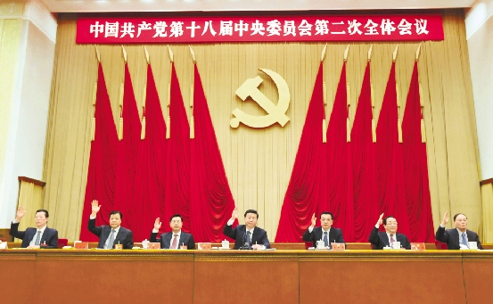 习近平、李克强、张德江、俞正声、刘云山、王岐山、张高丽等在主席台上。 新华社记者 姚大伟 摄