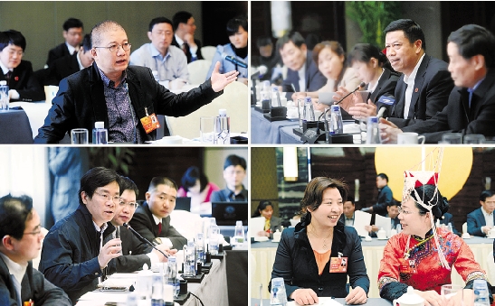 浙江代表在全国两会上踊跃发言,积极建言献策。 本报记者 黄曙林 摄