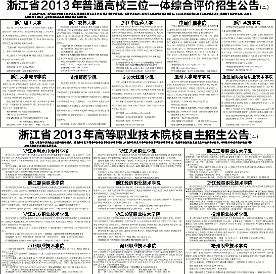 浙江省2013年高等职业技术院校自主招生公告(二)