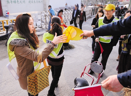 3月21日,杭城街头,新领驾照的驾驶员上路劝导文明出行。 记者 胡元勇 通讯员 罗依尹 摄